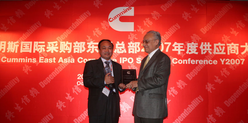 2007年10月,美國(guó)康明斯公司頒發(fā)優(yōu)秀供應(yīng)商獎(jiǎng)現(xiàn)場(chǎng)